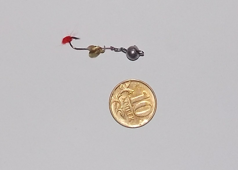 Сварганил такую вот вертушку, провел, в тазе с водой, испытания. Вертится. Только даже самому лепесток все-таки маловат показался. Наверное, побольше сделаю, чтобы крючку №14 соответствовал.
